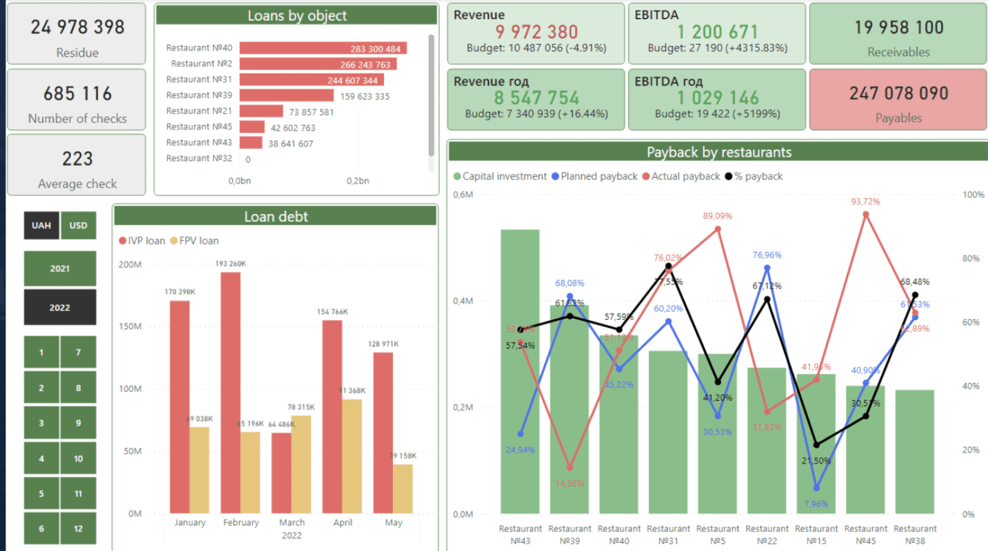 All the mentioned above interactive reports give you vital KPIs any time updated and consolidated into a one screen reflecting your company’s financial state.